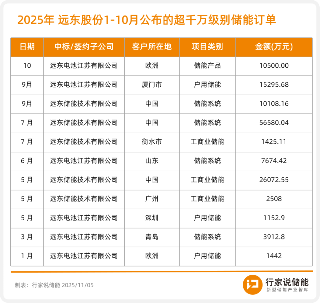 11月5日消息,远东股份披露子公司中标项目的提示性公告,其中包含储能产品1.05亿元,客户项目所在地为欧洲。